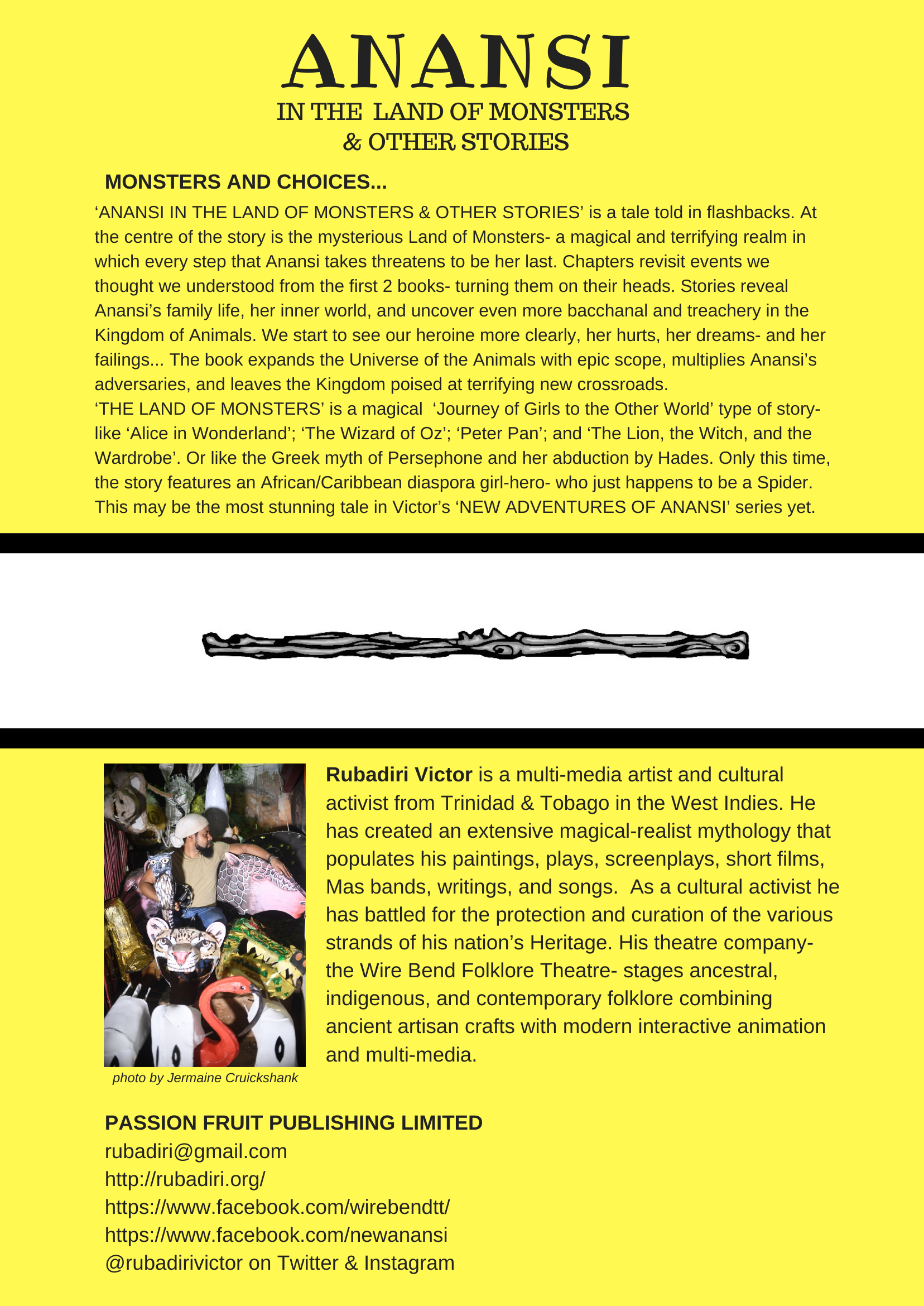 ‘ANANSI & THE LAND OF MONSTERS & OTHER STORIES’ is a magical ‘Journey of Girls to the Other World’ type of story- like ‘Alice in Wonderland’; ‘The Wizard of Oz’; ‘Peter Pan’; and ‘The Lion, the Witch, and the Wardrobe’. Or like the Greek myth of Persephone and her abduction by Hades. Only this time, the story features an African/Caribbean diaspora girl-hero- who just happens to be a Spider. This may be the most stunning tale in Victor’s ‘NEW ADVENTURES OF ANANSI’ series yet.